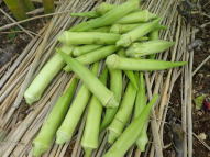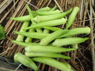 マルチ栽培で植え付けると地温確保と雑草防除に有効です。 畑に直接まく場合は約2pの深さにタネをまきます。 ポットにタネをまく場合は本葉2〜3枚で定植します。 果実が成り始めたら1株当たり50g(8:8:8)の化成肥料を施し、果実の下の数枚を残しいて下葉は生育にともなって取り除きます。 6〜8節以上に花が咲き、長さ約10〜16pが収穫適期です。 適期を逸すると果実が硬くなりますので早めの収穫を心がけます。