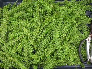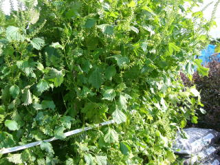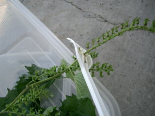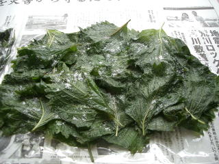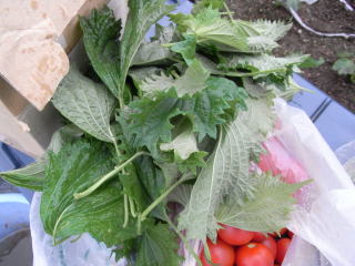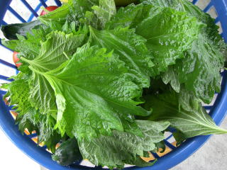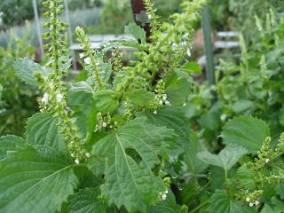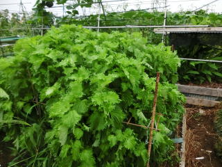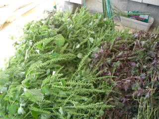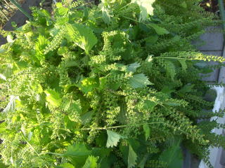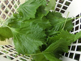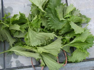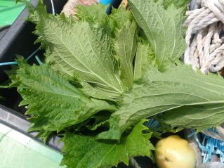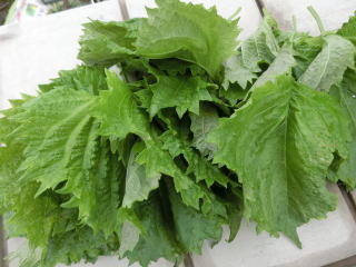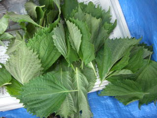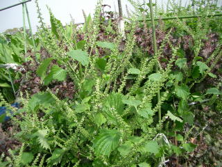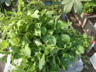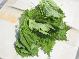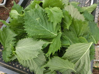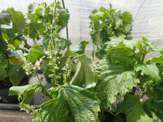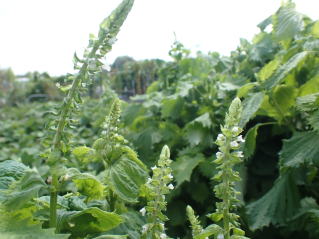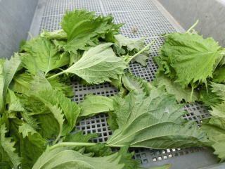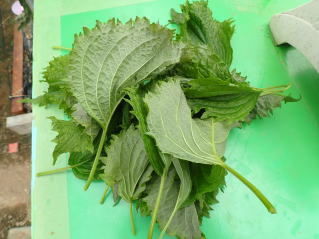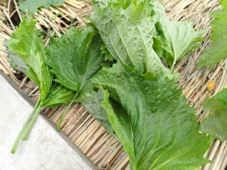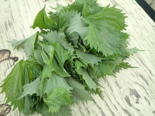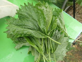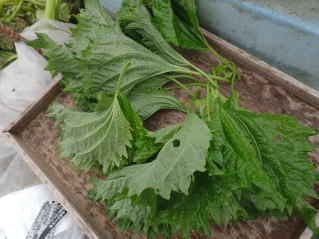 葉ジソは大きい葉から順番にかきとります。穂ジソは穂が出て数花咲いた時に摘み取ります。芽ジソは浅い箱に種を多めに蒔いて生えそろったらナイフでそぎ取ります。