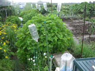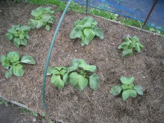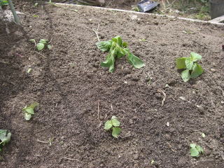 植え付け 追肥:本葉が4枚のころ、条間60p、株間30pの間隔で植え付けます。草丈が15〜20pになった頃から追肥し土寄せします。