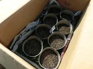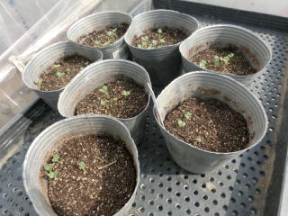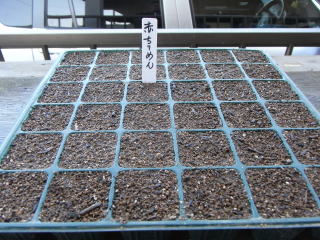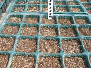 育苗:3号ポットに培養土を入れ、種を5〜6粒ずつをまき、うすく覆土します。本葉が2枚のころまでに1本立ちにします。