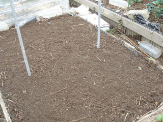 畑の準備:植え付けの2週間前までに石灰を施し、よく耕します。畝の全体に元肥をまいてよく耕し、幅90pほどの畝を立てます。