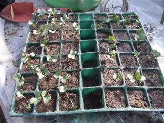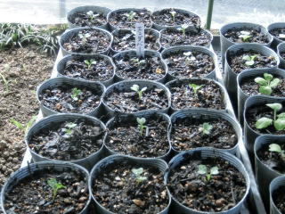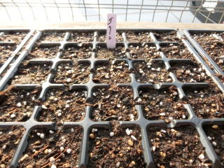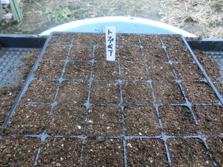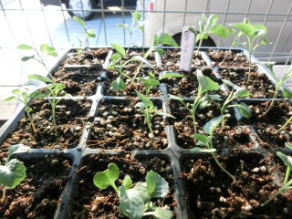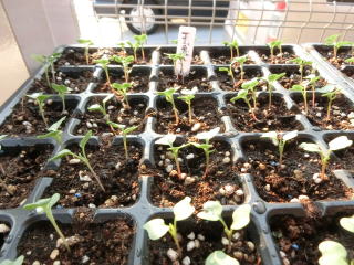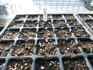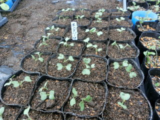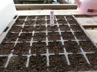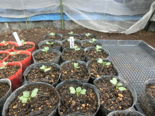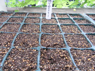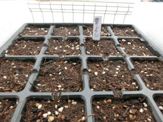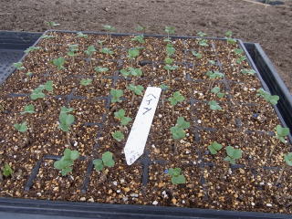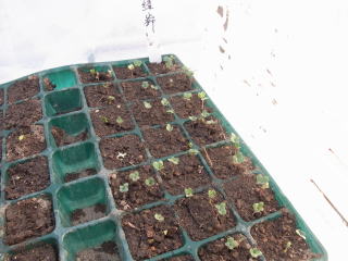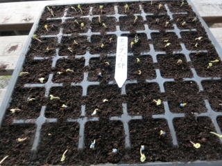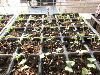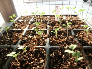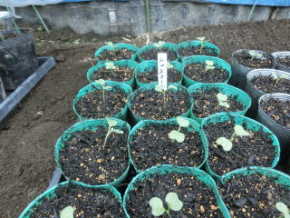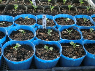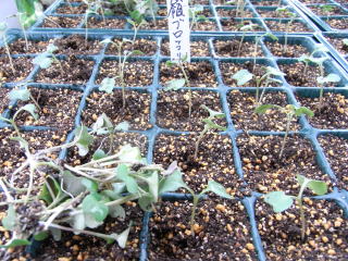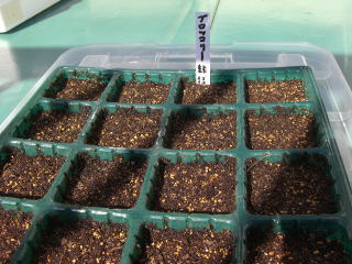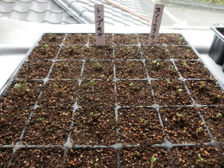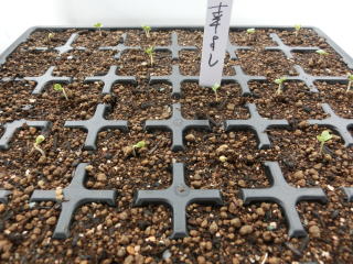 ポットかセルトレイなどを用いて育苗します。発芽までは摘湿を保ち、本葉5枚程度の苗に育てます。