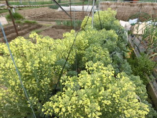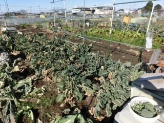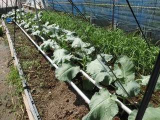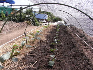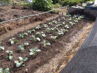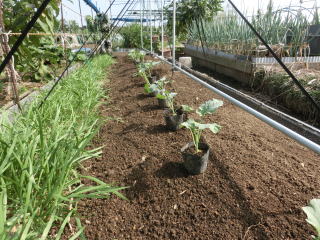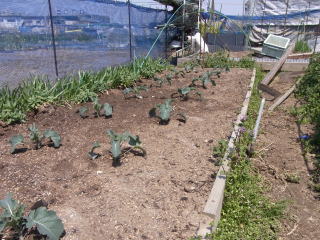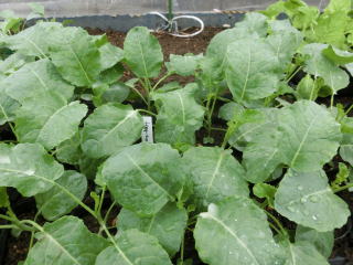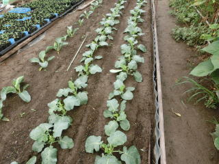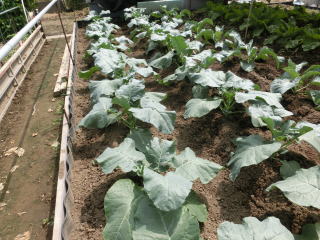 1u当たり苦土石灰100g、完熟堆肥2sと有機配合肥料100gを施します。追肥は本葉8枚の頃と花蕾の見え始めに行います。アオムシ・コナガの防除に努めます。