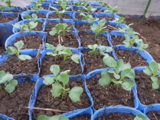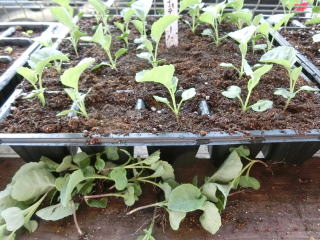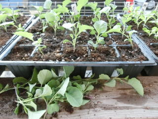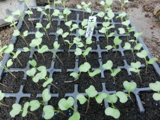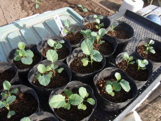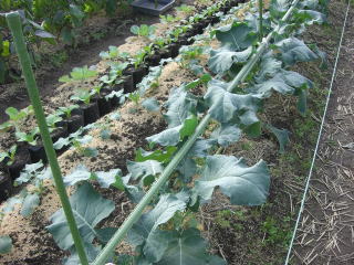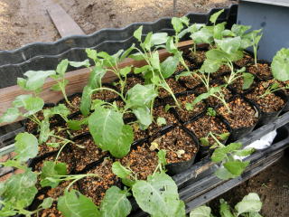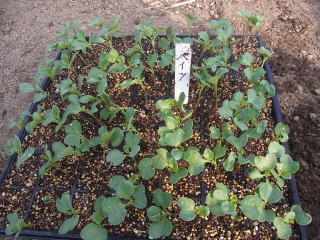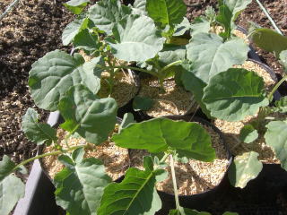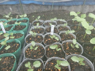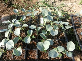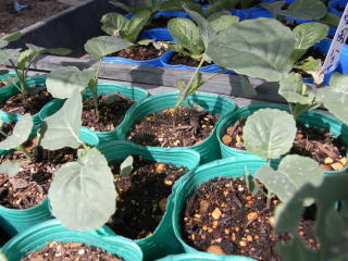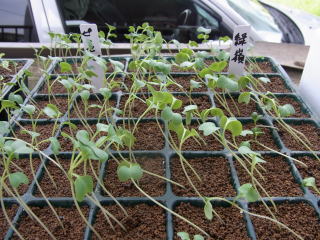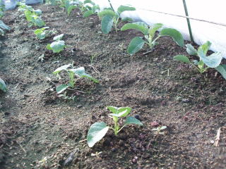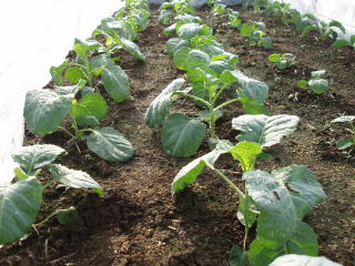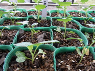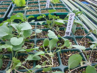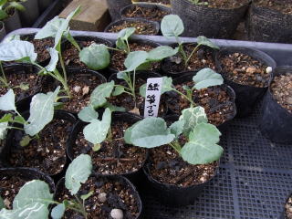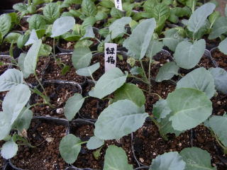 苗床に薄まきし、本葉が2枚くらいの時にポットに移植します。畑には定植の2週間以上前に、元肥として苦土石灰、配合肥料、堆肥などをすき込んでおきます。本葉が5〜7枚の時50〜60pの間隔で定植します。定植後1〜2週間後盛んに伸び始めたころと、花蕾が見え始めたころの2回にわたり、配合肥料を施し、中耕、土寄せします。