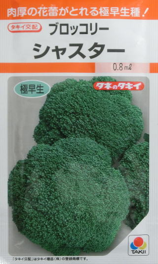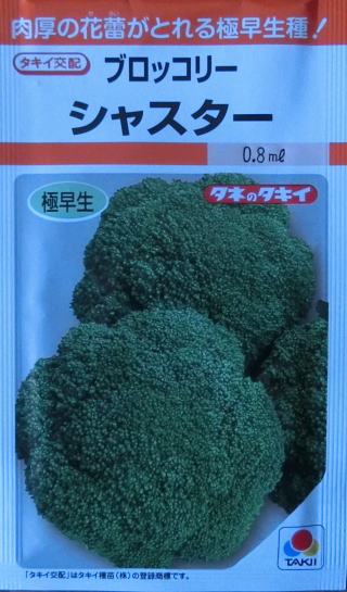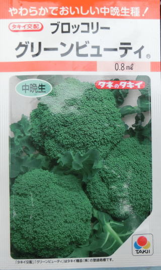 耐寒性が強く、生育旺盛で栽培容易な中晩性種。花蕾は濃緑色で、粒のそろいやしまりがよい。頂花蕾収穫後は側枝花蕾も次々にとれる。