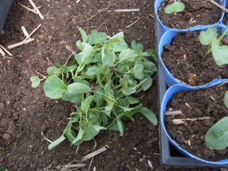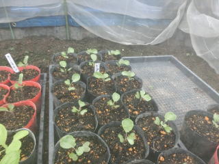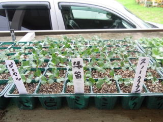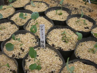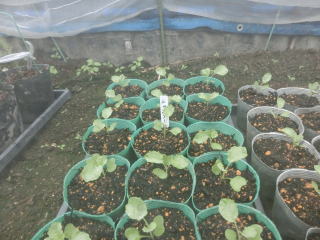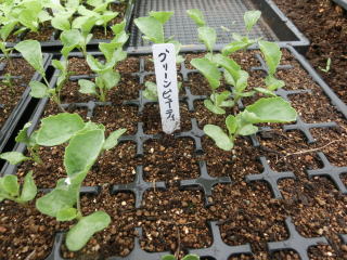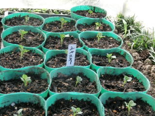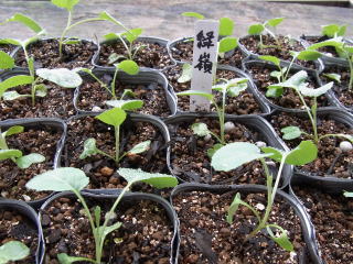 苗床に薄まきし、本葉が2枚の時ポットに移植します。畑には定植の2週間以上前に、元肥として苦土石灰、有機配合肥料、堆肥などをすき込んでおきます。草勢がややおとなしいので、肥料はやや多めに施し初期生育を促進させるようにします。