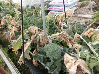 植え付け後85日ほどで直径15cmになり収穫できます。頂花蕾の収穫後、側花蕾の生長も期待できます。春〜初夏は花蕾の肥大が早いので取り遅れないようにします。
