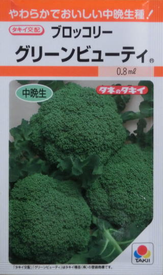 べと病、黒腐病に強く、春まき・夏まきとも作りやすいブロッコリーです。花蕾はドーム型で濃緑色、花蕾粒は小粒でよくそろい、形の乱れが少なく品質がすぐれています。