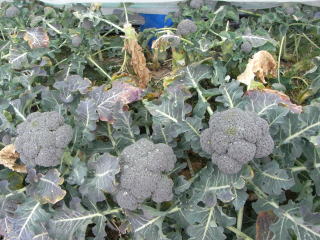 頂花蕾が緻密でしまっている適期に収穫します。側枝花蕾は追肥を行い、生育に合わせて順次収穫します。