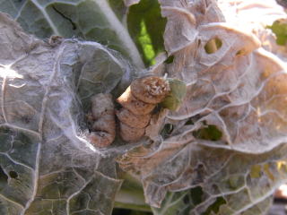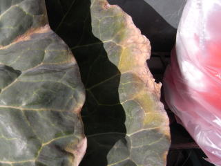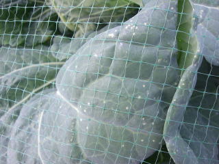 アオムシの食害がひどくなると茎葉の生育が阻害されるので防虫ネットで蝶の産卵を防止する。