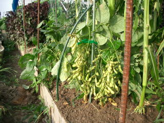 家庭菜園で収穫してすぐゆでたエダマメの食味は最高です。