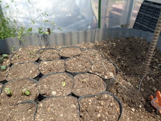 1uあたり苦土石灰100g、完熟堆肥2kg、有機配合肥料50gを施し、早蒔きは保温します。