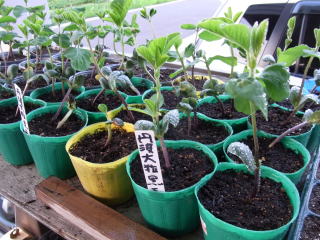 畝間60cm、株間20cmでタネ3〜4粒を点蒔きし、ポットなどにも2〜3粒蒔いておきます。