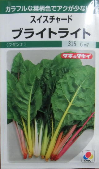 葉柄色は黄・赤・白色などカラフルで、見ても楽しめる。和え物・お浸し・油炒め・サラダなど、幅広く利用できる。耐暑性があり、厳寒期を除きほぼ1年中タネがまける。