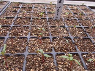 あらかじめ種を一昼夜水に浸し、条間20pで条まきし、覆土後たっぷり灌水します。種の一塊から数本の芽が出てくるので、間引いて株間を5〜6pにします。草丈が20p程度になったら、順次収穫します。