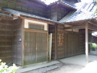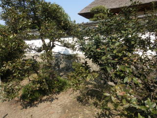 學校の裏に位置しないにもかかわらず、この門が裏門と呼ばれていたのかは明らかではありません。間口八尺の薬医門で、屋根が切妻造りの茅葺です。両脇に目板瓦葺の屋根をかけた袖塀が付いています。発掘調査によって、砂利敷きの通路が門から主屋の玄関や脇玄関へと伸びている様子がわかりました。