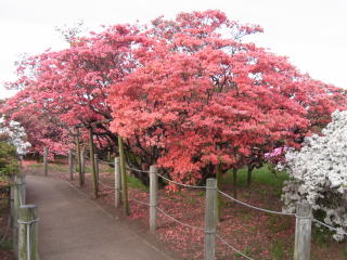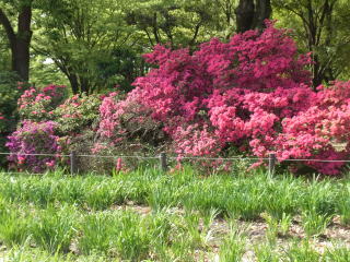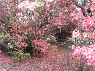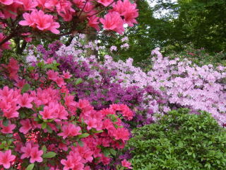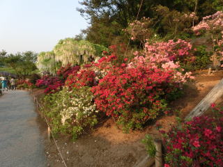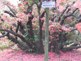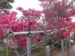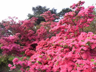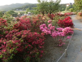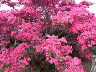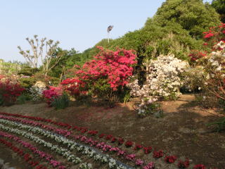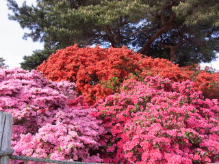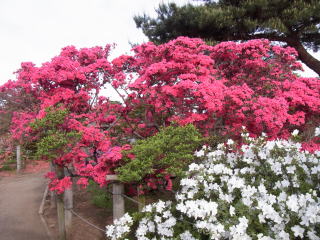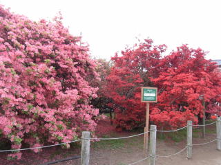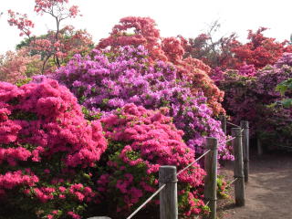 この名勝を含む園内には、樹齢八百年を超えると考えられる樹高五メートルに達する古木をはじめ、約一万株のツツジが植えられています。特にヤマツツジ系やオオヤマツツジ系、キリシマツツジ系の古木や巨樹が多く、珍しい品種も数多くあります。ヤマツツジの巨樹群が自然形のまま保存されるなど、歴史的・学術的にも貴重なもので、シーズンには、紅色や淡紅色、紫色などの花が全山燃えるように咲き誇ります。