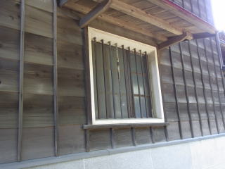木小屋は物置で、煮炊きに使う燃料用の[木」などを格納する建物といわれています。桁行五間、梁間二間、屋根は寄棟造の茅葺き、外壁は上が土壁の中塗仕上げ、下は板壁です。床は三和土(たたき)の土間です。