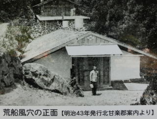 明治37年、当時高山社蚕業学校に在学中の庭屋千尋がこの場所に注目して、数度の踏査を重ね蚕種貯蔵を行うには有望な地であることを確認し、父である清太郎に報告しました。そこで庭屋清太郎は完全な蚕種貯蔵庫を設置するために専門家を訪ね、資本金五千円で明治38年9月に起工しました。これがのちに貯蔵能力が日本一の「風穴界の覇王」と呼ばれることになる「荒船風穴」の始まりです。