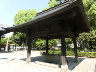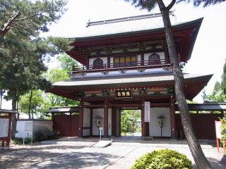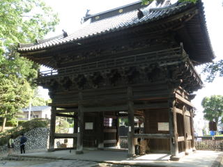構造雄大、手法剛健、入母屋造り、行基葺きの山門である。両側の仁王尊像はこの建物より古く、鎌倉時代の運慶の作と云われている。反橋は俗に太鼓橋といい、江戸時代安政年間の再建である。