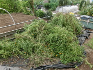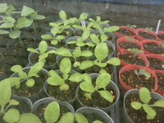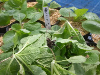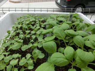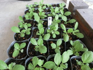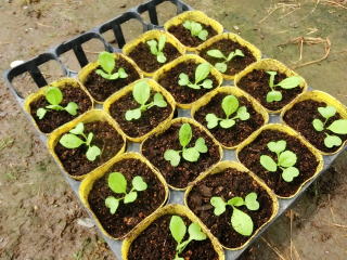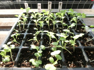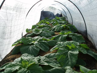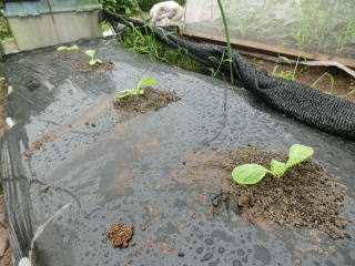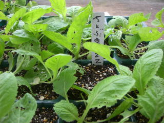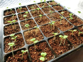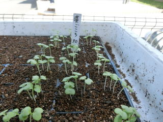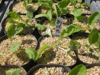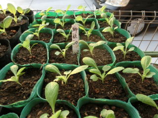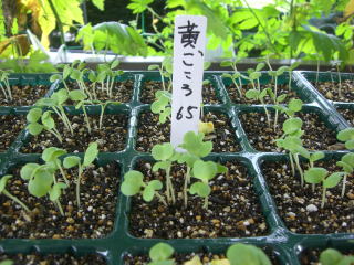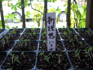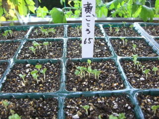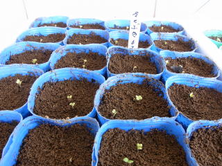 発芽滴温は約25℃です。連結ポットに種をまき、うすく土をかけます。ポットは寒冷紗のトンネルで覆ってやると強い雨や害虫の予防に効果的です。