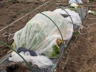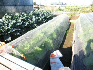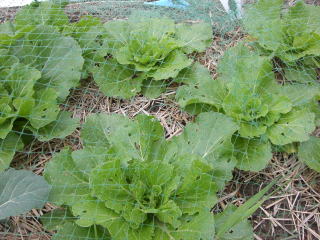 1u当たり苦土石灰100g、完熟堆肥2kg、有機配合肥料100gを施します。追肥は植え付け後10日くらいと、20〜30日後の結球始に行います。アオムシ、コナガの防除に努めます。