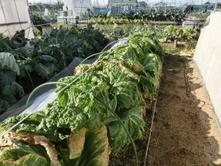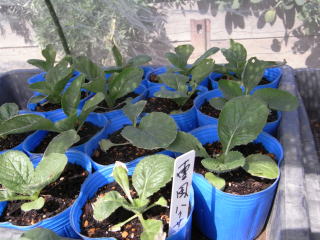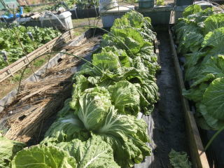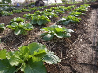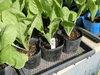 生育が早いので元肥には、堆肥などのほか、即効性の化成肥料を多めに施します。小型の白菜を作るには50cm×25cmで1u当たり8株位で良質のミニ白菜が作れます。