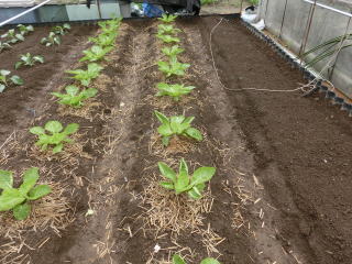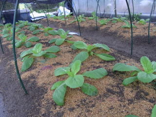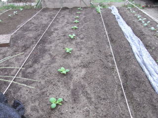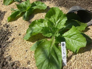 直まきできますが、小さいうちに障害が起きると収穫まで至りませんので、育苗資材を使いましょう。128穴トレーならば本葉2〜3枚で畝間60cm、株間50cmに植えつけます。