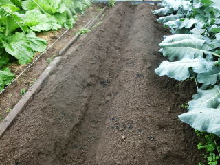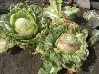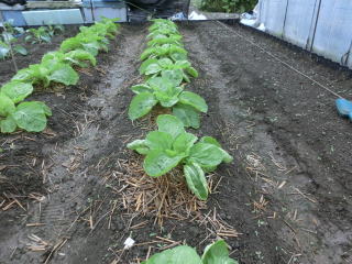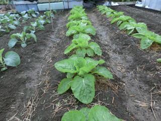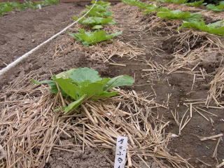 本葉4〜5枚になったら畑に植え付けます。畑には1u当たり堆肥3s、苦土石灰100g、化成肥料100gを施しておきます。葉が横に大きく広がらないと良い球になりませんから、株間を充分にとり、植え付けてから15日目頃と葉は立ち始めたころに1株当たり80gの化成肥料を施してください。