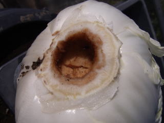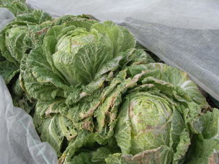 乾燥や過湿に注意し、生育後半まで肥効を保って、順調な結球を進めます。結球の頭を軽く押してみて、硬くしまってきたら収穫します。