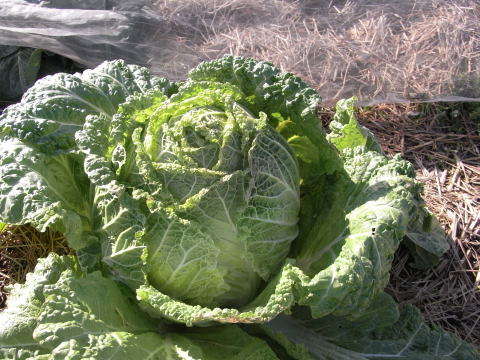 冬越しに外葉で頭部を結束する時は完全に覆うようにし、結球頭部が露出しないよう丁寧に行う。(結球頭部が凍害で腐る)外葉が足りないような時は補助的に新聞紙を使ってでも完全に覆うほうがよい。二月末にはそれらを取り除いた方が良い結果が見られた。取り除かなかった物は頂部の葉がとろけ、3〜4枚を取り外すこととなった。