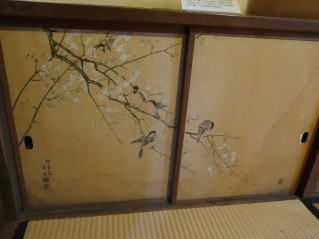 櫻に雀図襖絵 (品川篁圃画 絹本淡彩 明治二十六年(1893)