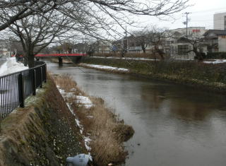 温海川沿いの桜並木