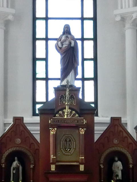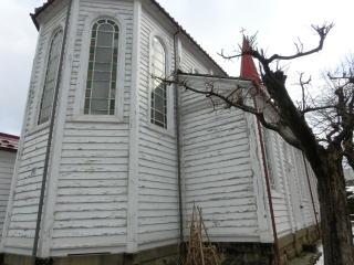 この天主堂はフランス人・パピノ神父の設計といわれ、明治三十六年(1903)鶴岡市三日町に在住した大工・相馬富太郎が棟梁となって完成した建物で、ヨーロッパ中世期頃に建築されたロマネスク様式をもつ教会であり、昭和四十八年山形県有形文化財、昭和五十四年五月に国指定重要文化財に指定されました。