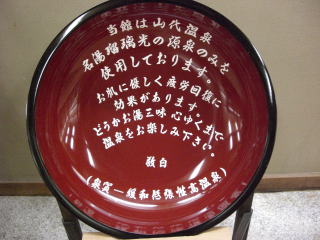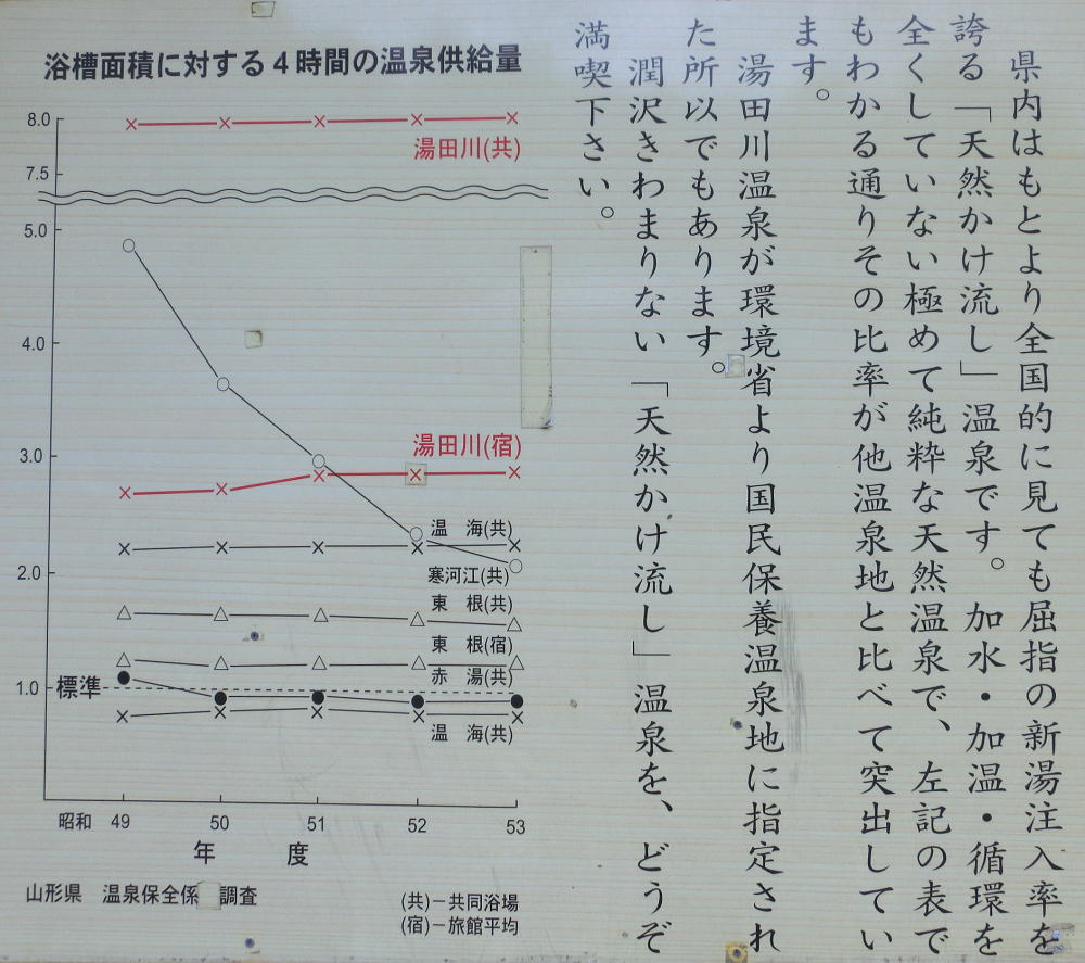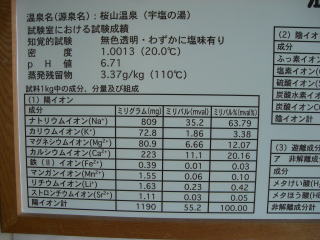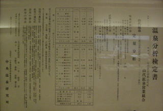 館内の温泉分析書には湧出量として、660ℓ/minとあるが、ホームページには一日10万ℓとなっている。機械揚湯なので使用量と、湧出量は同等となると思うのですが、66.0/minの見間違いか?。同時にホームページには、山代最多の湧出量と記載されているのでこれからも?。記載の湯量は可能最大揚湯という事なのかとも思う。ともあれ、山代温泉の第1位源泉であることは間違いの無いことらしい。駅から加賀温泉郷の中では近く、バスの便もあり、利用しやすい温泉です。
