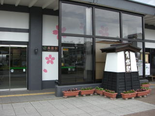 角館駅 壁さくらがお出迎え