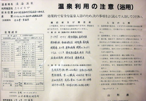 泉温: 60摂氏・・・・計測周囲温度華氏15.5度との記載がある。