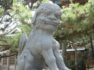 狛犬 風化のためか面白いお顔をしています
