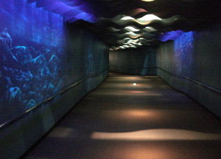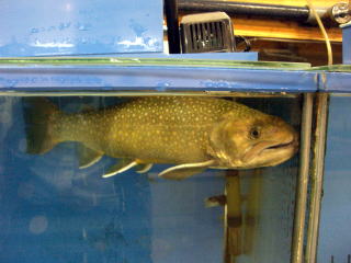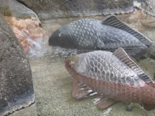 鮭の川上りをガラス越しに現実に