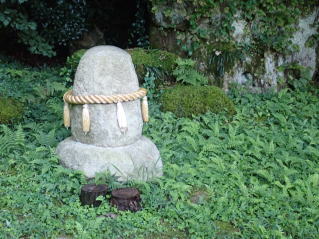 臥牛(牛が足を折って横になっている様子)が何処から見たらその姿に見えるのか?、想像するに左写真で右向きで横たわり、縦の白い線当たりが頭部で右が顔と鼻部、中央部が背中で左端が尻部に見えなくもないが、正解は?自転車でゆっくり10分強で着く。