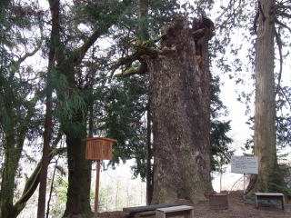 南側の幹の外側は下から上まで欠けているが、樹勢は旺盛で、県下稀に見るモミの巨樹である。
