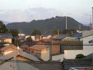 駅前から東正面に見える山が臥牛山です。