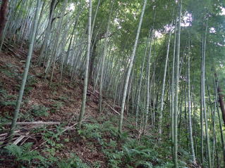 登城口に自転車を置いて整備された坂道を登るが、思っていたより急で長い。尾根筋に出ると後は緩やかな登りと下りで楽。工事中で迂回する所もあるが、簡易な手すりが設けてあり問題なし。頂上海抜135mと言っても海に近いし比高130mと言ったところ。さすがに汗をかき、一気にペットボトルの水を飲み干した。