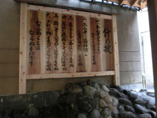 当新滝旅館では与謝野晶子曽遊ゆかりの地として、永く偉大な歌人を顕彰すると共に、また偲ぶよすがとしてここに歌碑を建立した。歌碑に刻んだ文字は当館所蔵の与謝野晶子直筆の歌から採ったものである。
