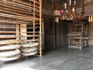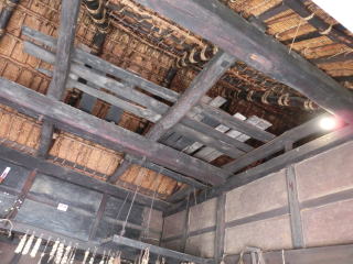 本堂は、七間半に六間半の大きさで、けやき、松材を使用し、表面出入り口には、土戸・板桟戸・障子戸の三重戸を設け、窓には土戸、カラスをつけ、特に防火に重点を置き、火から佛を守ろうとした心遣いが感じられます。