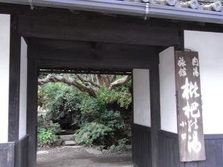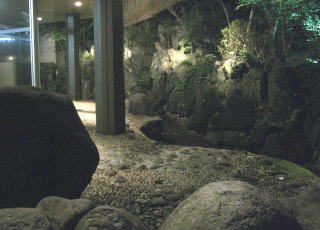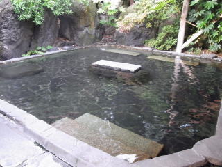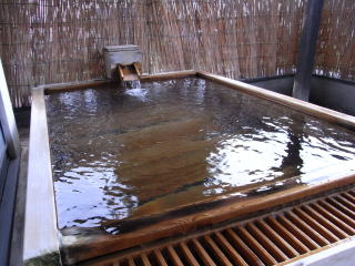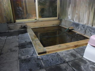玄関から出て左奥4~5m登った所に御殿の湯(露天風呂)があります。外出用の下駄が備えてあるのでこれを利用します。すいているので気ままに勝手な事をやっても睨まれませんが、其れはあなたしだいです。
