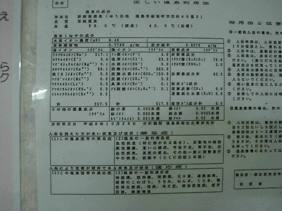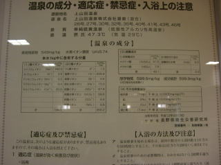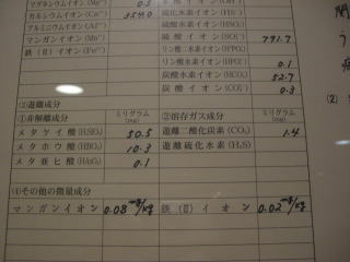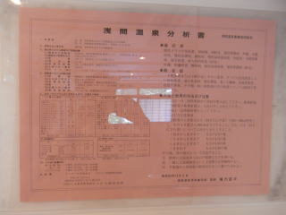 案内板には温泉成分が濃いとのうたい文句が見られたが、多くがナトリウムイオン(2172㎎/㎏)ー塩素イオン(3163㎎/㎏)で占められていて、それらを除くと単純温泉クラス?海水浴でもここの成分の5~6倍の濃度があるので濃度をあまりにも強調するのもなぁ。