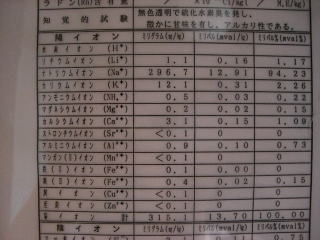 pH8.9 陽イオン315.1mg/kg 陰イオン673.1mg/kg