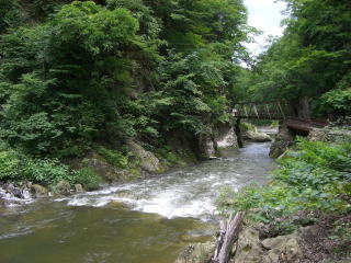 直下に陸羽東線が走っている様で、カタコトとハッキリした音を残して行く。宿の辺りが稜線になっているのでしょうかそれに向かって湯煙が立ち上ってくる。此処の源泉なのか、下の温泉宿の源泉なのか、白く長くたなびくそれからは温度が高い事を臭わせている。