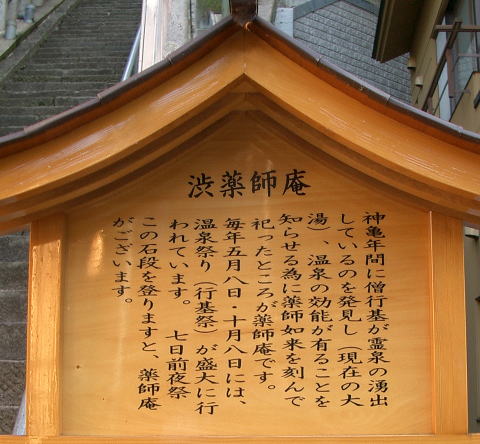 しかし、時代も移って数百年の後、自然とお湯の噴出も止まり、だんだんと人家も散じて徳川時代の始めにはすっかり集落もなくなり、わずかにこの湯脈のつながりでもあるのでしょうか、山裾の観音寺集落に霊泉の名残をとどめて現代に至っています。にもかかわらず、湯神社の信仰のみは、人家も絶え、集落が消滅しても尚変わりません。その後も神仏混交時代に一般民衆の名付けた「石薬師大明神」の呼び名のもとに、特殊信仰は代々地方民衆の間に伝わって今日に至っています。